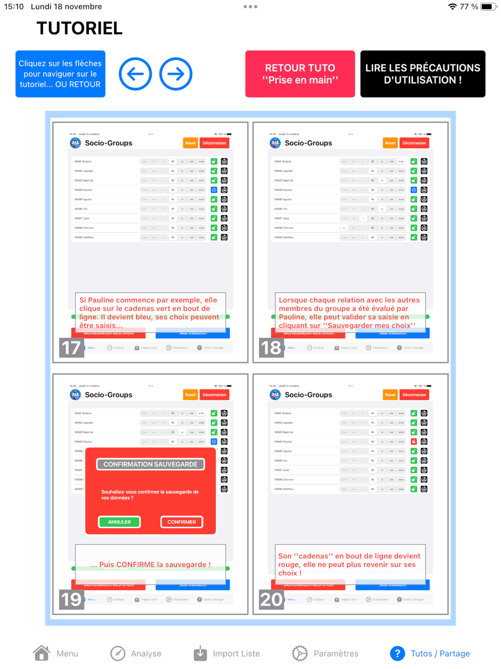 L'application est accompagnée d'aides, propositions et précautions à prendre avec ses élèves avant utilisation... Ces données supplémentaires permettent ainsi de montrer comment aborder en vie de classe par exemple, des thèmes ou valeurs relevant du « vivre ensemble »: