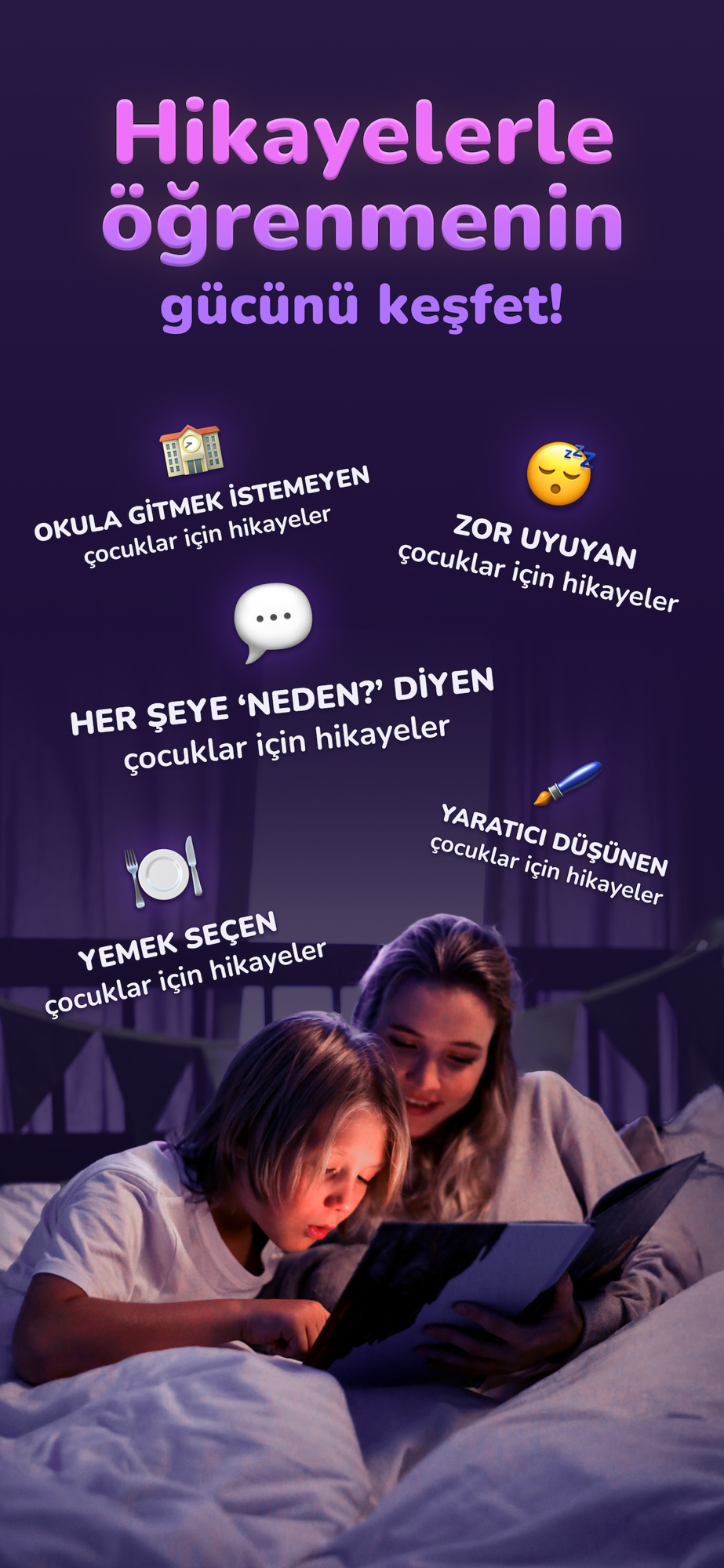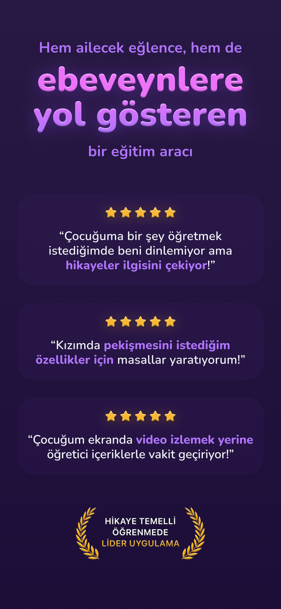 - Farklı temalara yönelik hazır kütüphanemiz ile çocuğunuz için özenle tasarlanmış renkli, eğlenceli ama en önemlisi öğretici hikayelere erişebilirsiniz.