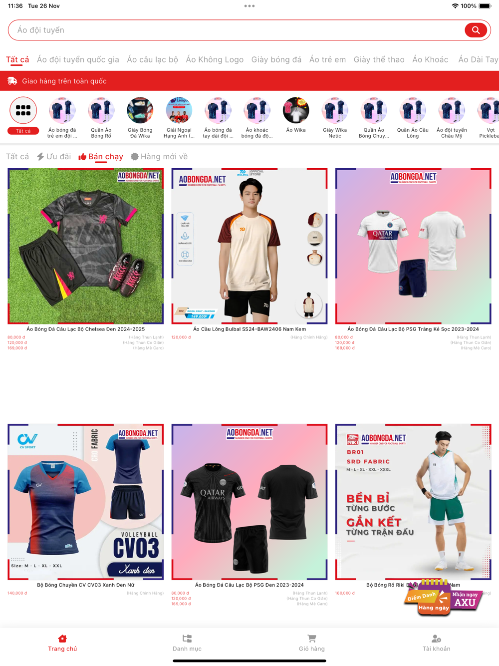 Ứng dụng Áo Đá Bóng. Nét không chỉ đơn thuần là một cửa hàng trực tuyến mà còn là một nền tảng kết nối giữa các tín đồ yêu thể thao và những sản phẩm chất lượng cao. Với giao diện thân thiện và dễ sử dụng, người dùng dễ dàng tìm kiếm và đặt hàng các sản phẩm bóng đá mà mình yêu thích.
