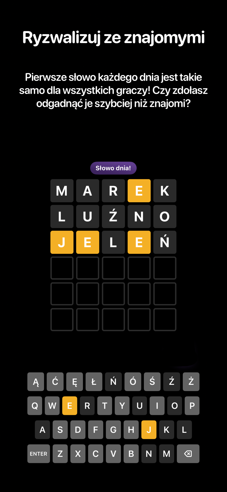 Jeśli lubisz rywalizację, po zakończonej rozgrywce możesz podzielić się swoim wynikiem ze znajomymi, nie psując im zabawy ze zgadywania. Zdobądź osiągnięcia i śledź swój postęp w zakładce Statystyki!
