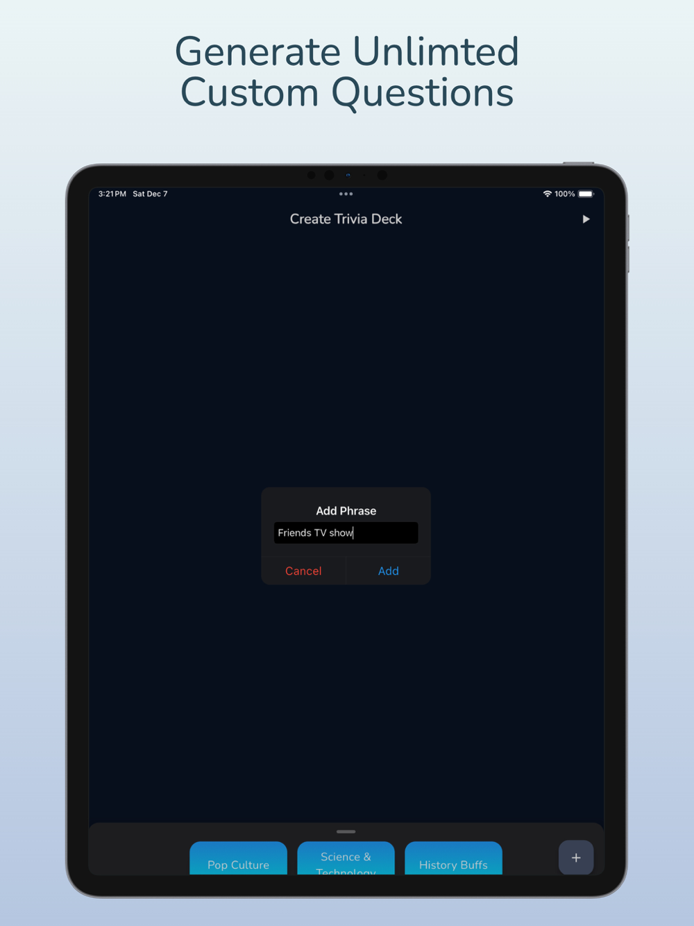 Unlimited Trivia Questions: Generate as many questions as you want in just a few taps.