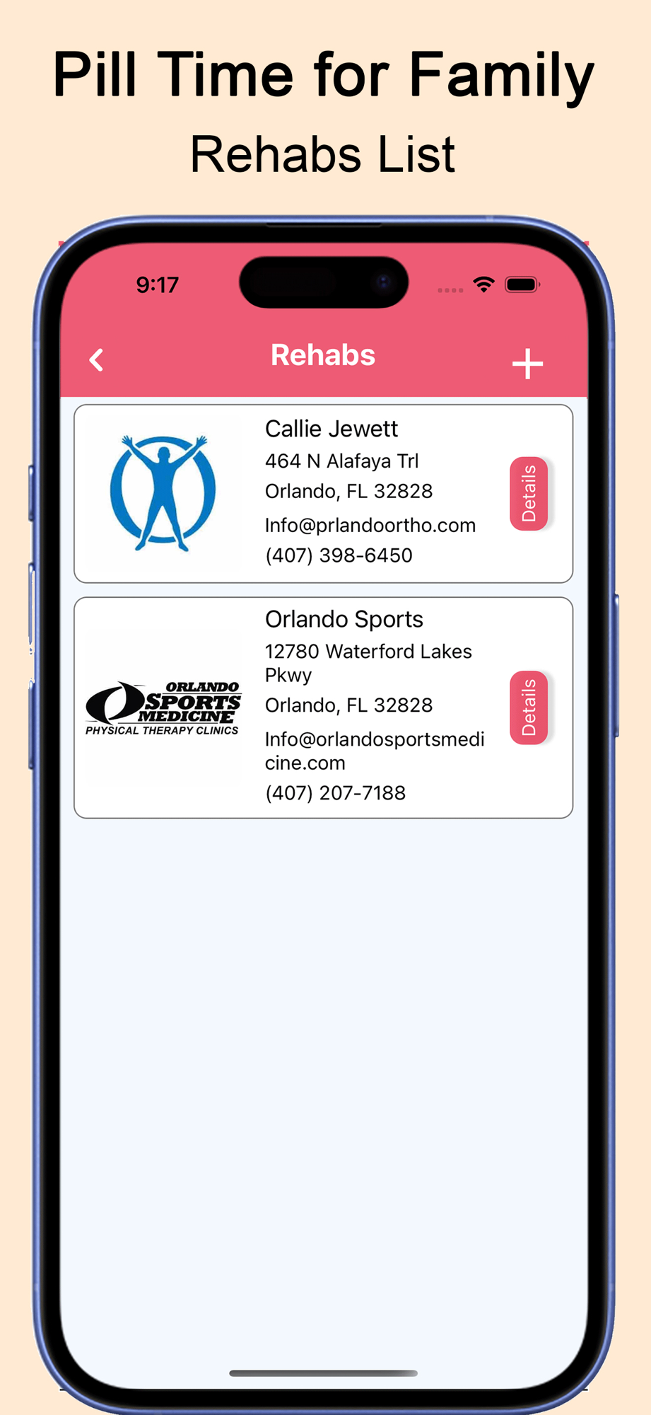 • Add Doctors you connect with all details including email, address and click to call or click to look up map.