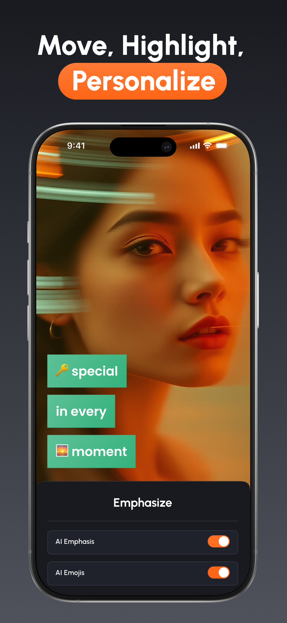 Simply upload a video from your library or record one directly in the app. Our AI will instantly transcribe the audio into text and generate captions with pinpoint accuracy. Customize the look and feel of your subtitles with a variety of stylish designs, emojis, and emphasis effects to make your content stand out.