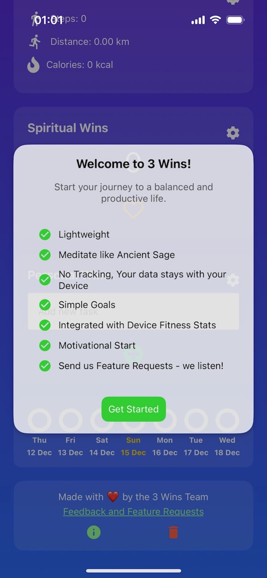 Goal Tracking: Set simple, achievable goals across Mental, Physical, and Spiritual categories.