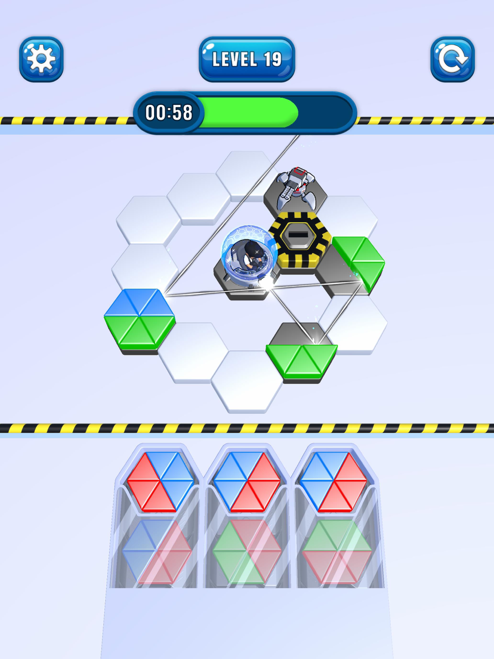 When pieces of the same color come together, they destroy each other. Your goal is to achieve the desired angles by destroying the right pieces.