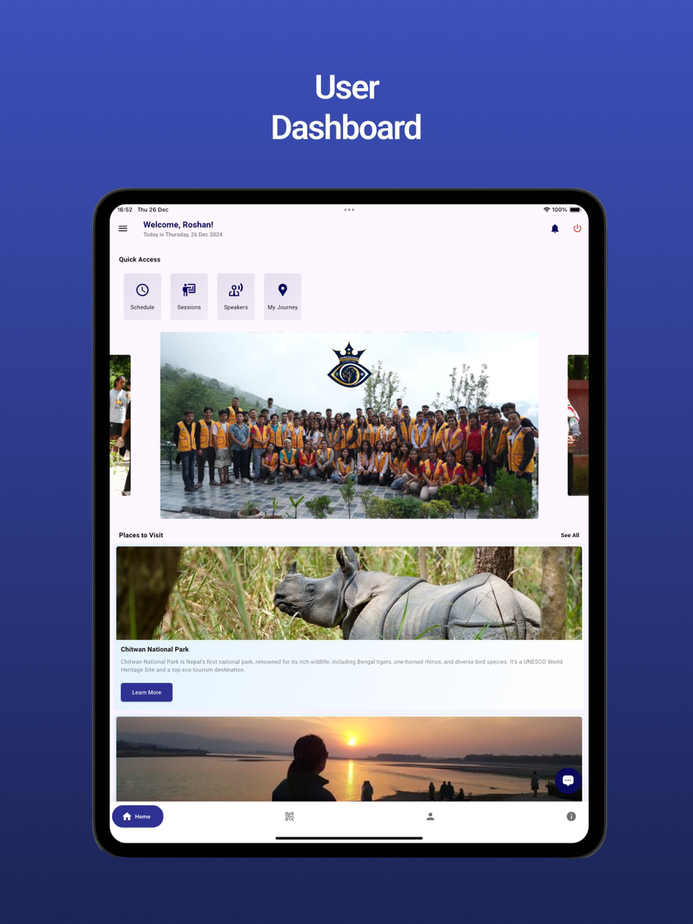 Experience a seamless and organized conference in Chitwan with our feature-packed app, designed to cater to participants, admins, volunteers, and speakers. Whether you’re attending, managing, or presenting, we’ve got you covered: