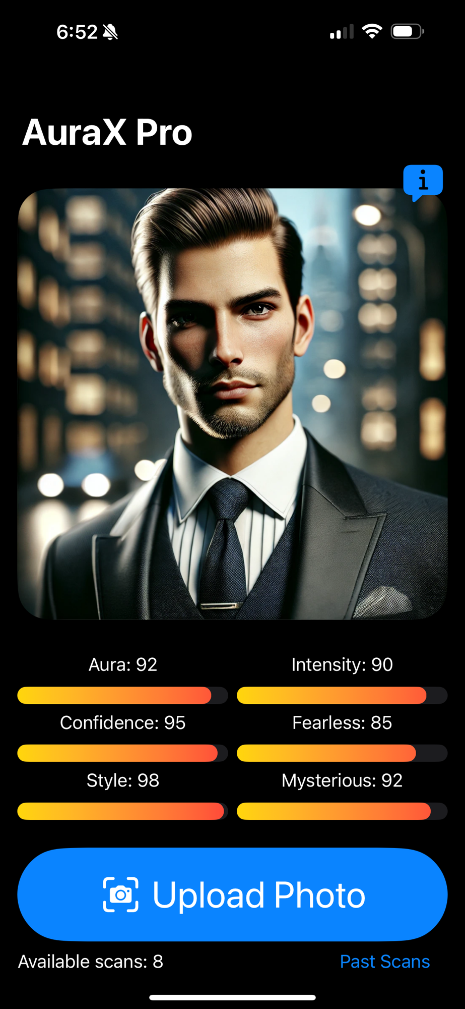 Uncover your hidden energy with AuraX, the app that deciphers your vibe from a single selfie. Just upload your photo, and our AI instantly evaluates your Aura, Intensity, Confidence, Fearless, Style, and Mysterious attributes.