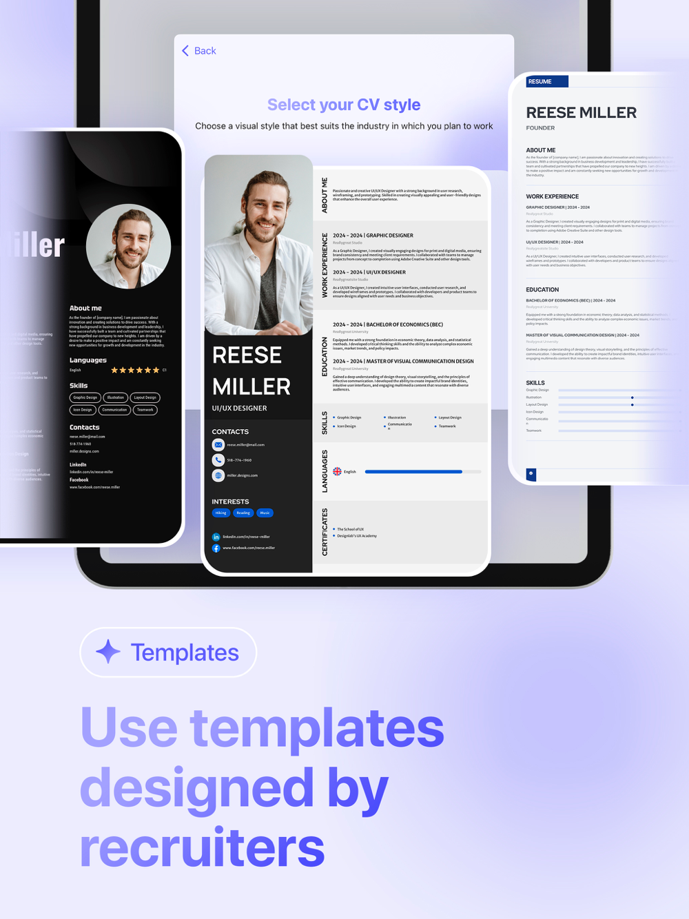 The application has a set of professional templates that inspire with their elegant design and are adapted to the requirements of ATS. Thanks to the convenient editor, you can easily personalize your resume to the smallest detail, adjust colors, indents, font and sizes of other elements.
