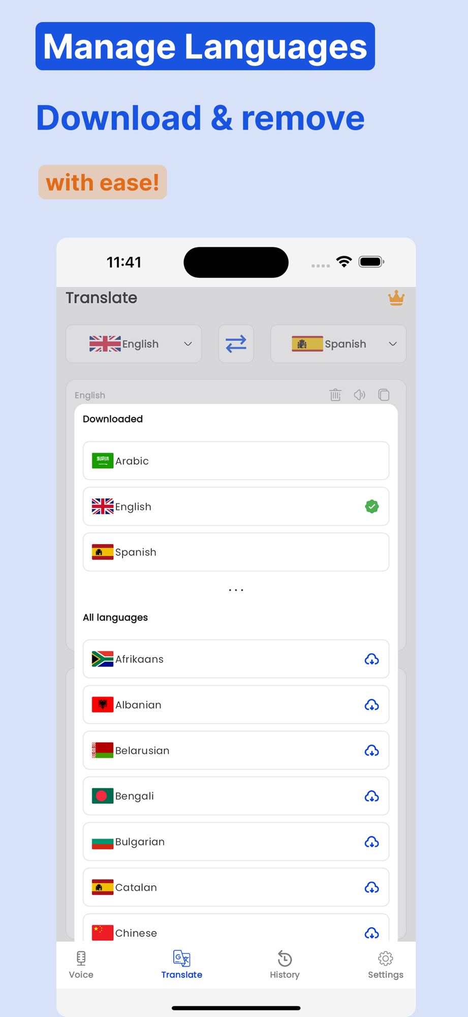 History & Favorites: Save your conversation translations or mark frequent phrases.