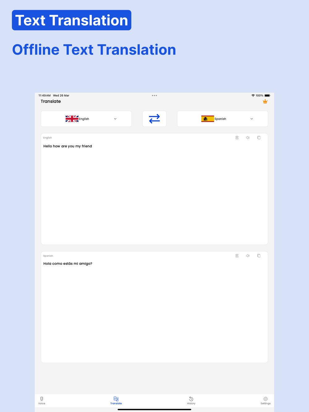 Offline Translation: Use this offline translator anywhere—no internet required.