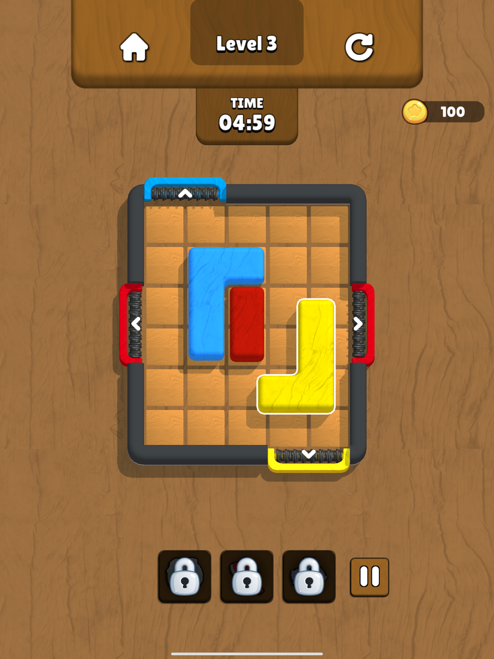 Move the wooden blocks around the board and match them with their exits to clear the level. As you play, new obstacles may block your way, so plan your moves carefully.