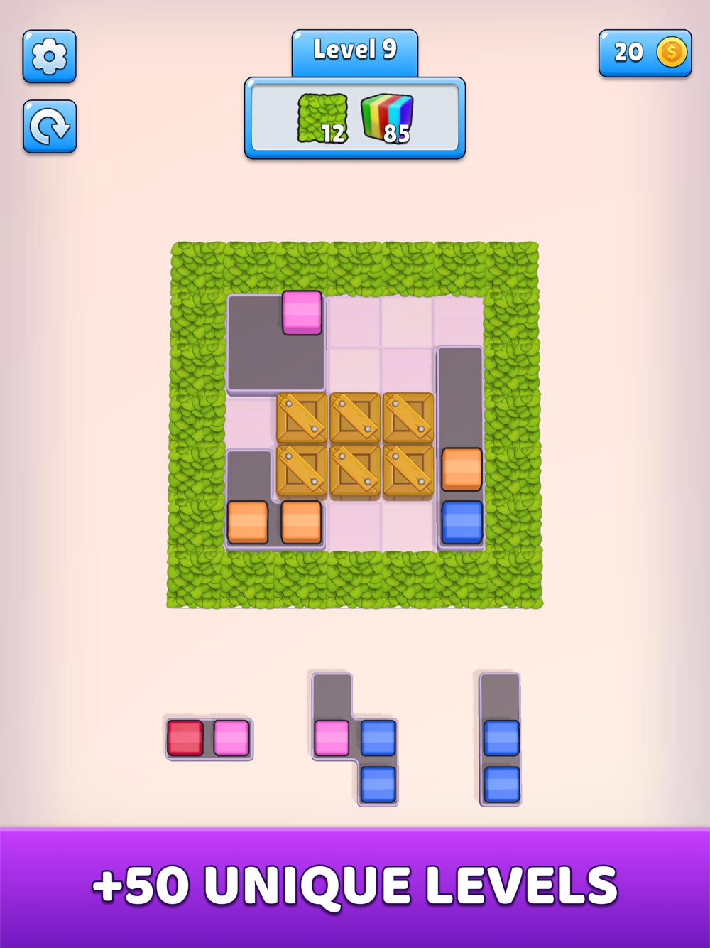 Dive into the ultimate autosort-puzzle-experience with Tetris shapes! Enjoy this addictive and fun gameplay with many different levels, features and boosters!