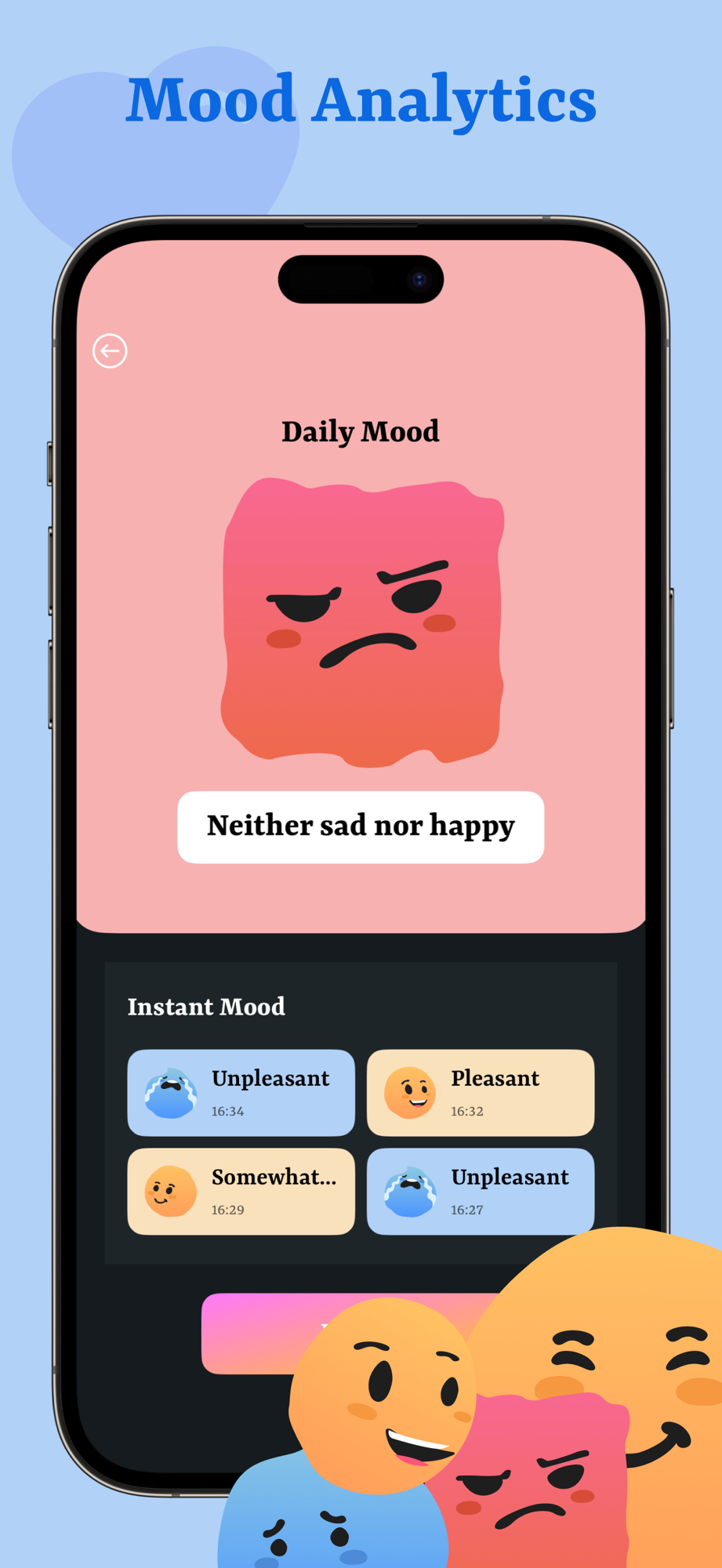 - Easy Mood Logging: Record your mood in just a few taps, with simple icons and custom labels.