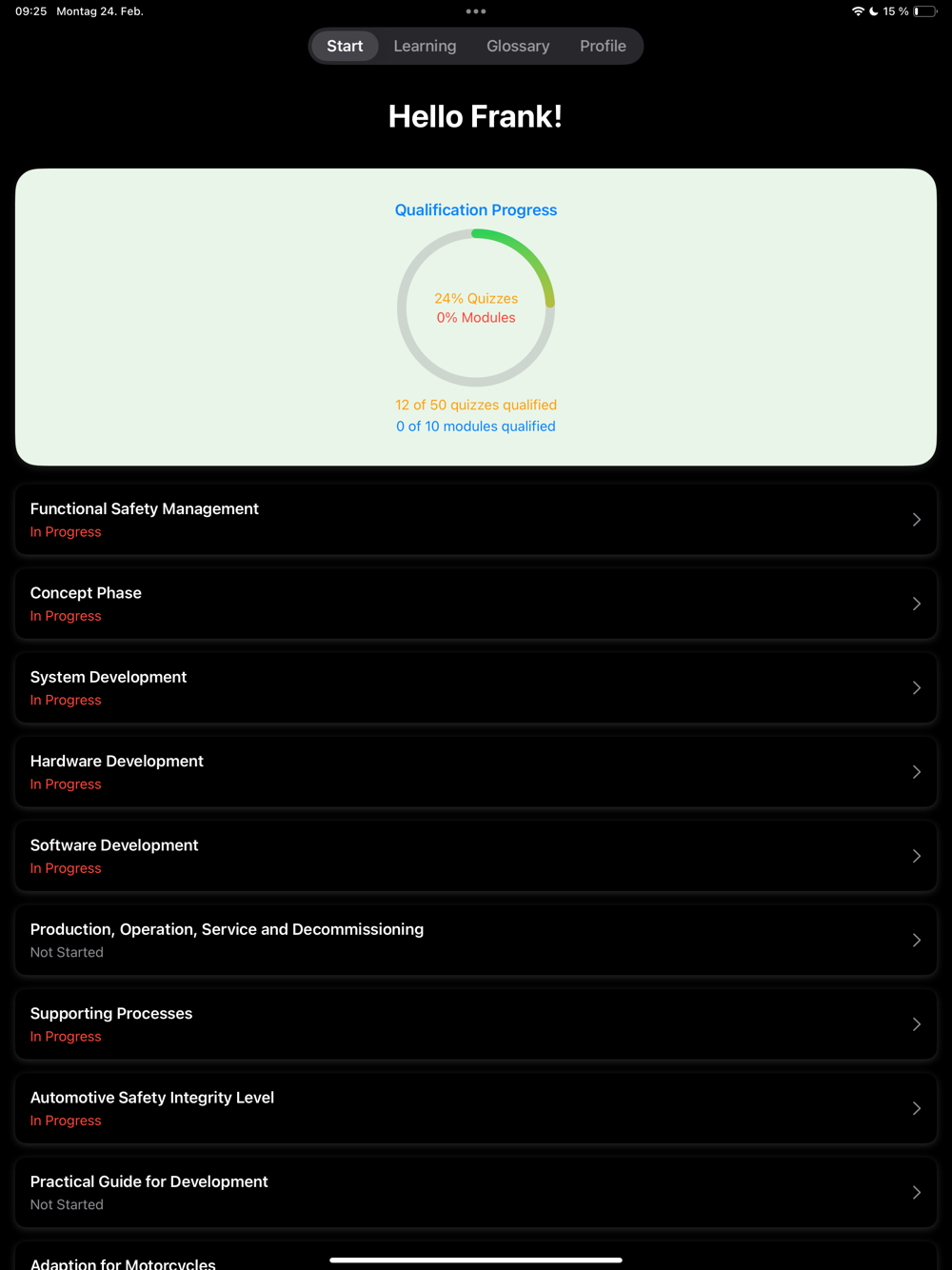 ISO26262 Learning is an educational app designed to help users master automotive functional safety principles. Through interactive lessons, quizzes, and certification, the app enhances understanding of safety-critical systems, risk assessment, and compliance standards in automotive and advanced engineering. Ideal for engineers, safety professionals, and students, this app provides a structured learning path to improve expertise in functional safety and regulatory requirements.