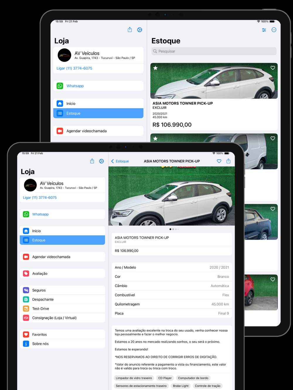 Com um amplo e diversificado estoque, nosso aplicativo permite que você descubra uma variedade de veículos de alta qualidade com apenas alguns cliques.
