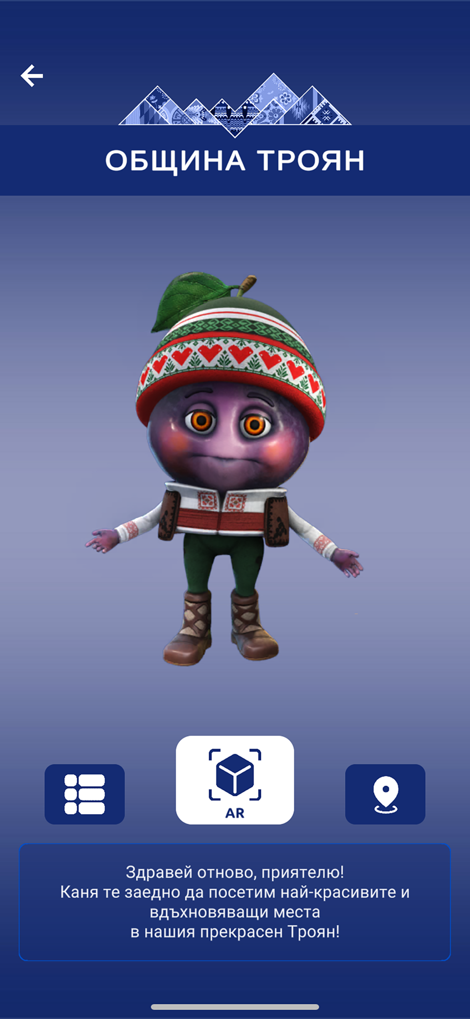 GoTroyan е мобилно приложение с добавена реалност, създадено за Община Троян, което предлага иновативен и интерактивен начин за опознаване на богатото културно и природно наследство на региона. Приложението съчетава модерни технологии и традиционни ценности, като предоставя визуално и съдържателно преживяване чрез четири основни тематични направления:
