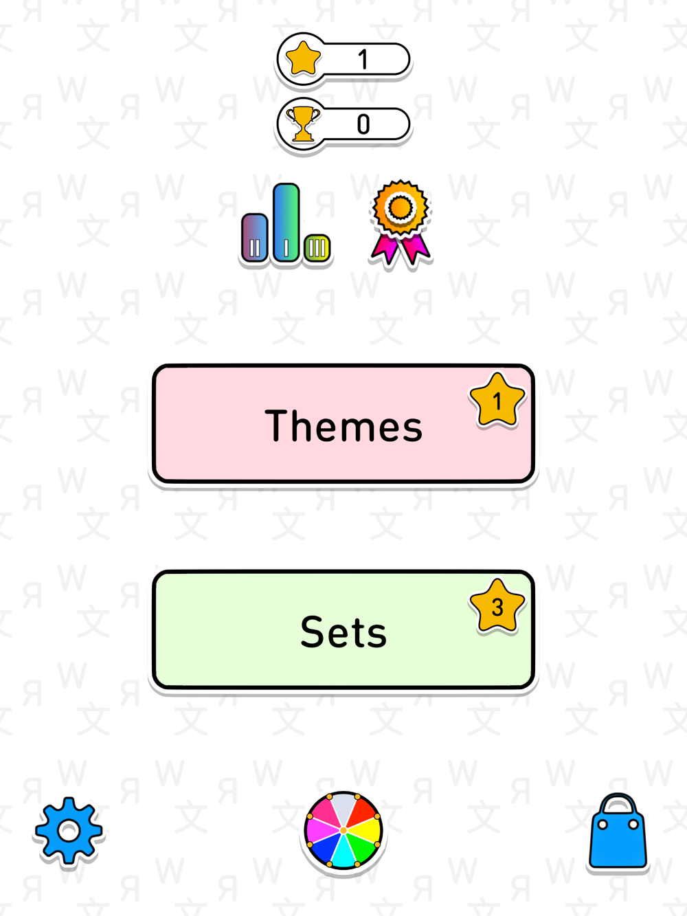 Level-by-level passage of a large number of thematic words and random words selected in themes and sets.