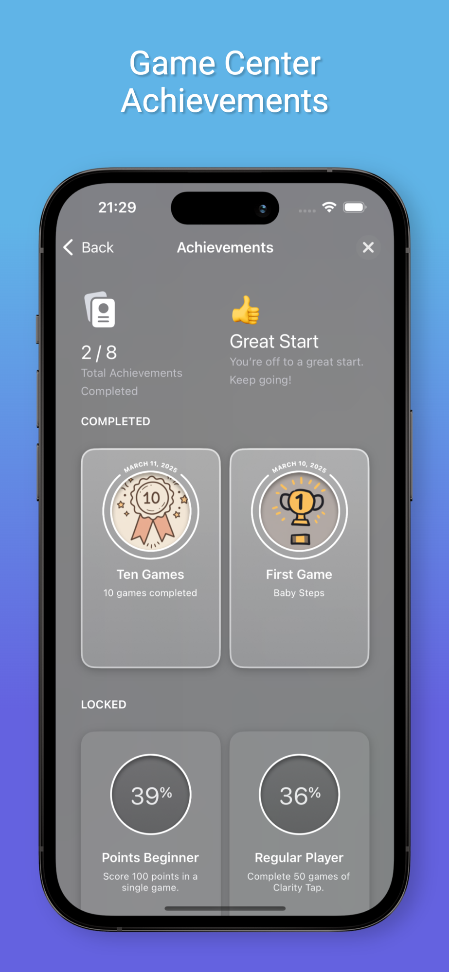 Clarity Tap is designed to be both challenging and relaxing. The game adapts to your skill level, gradually increasing in difficulty as you improve. Whether you have just a few minutes or want to train for longer sessions, Clarity Tap provides the perfect mental workout.