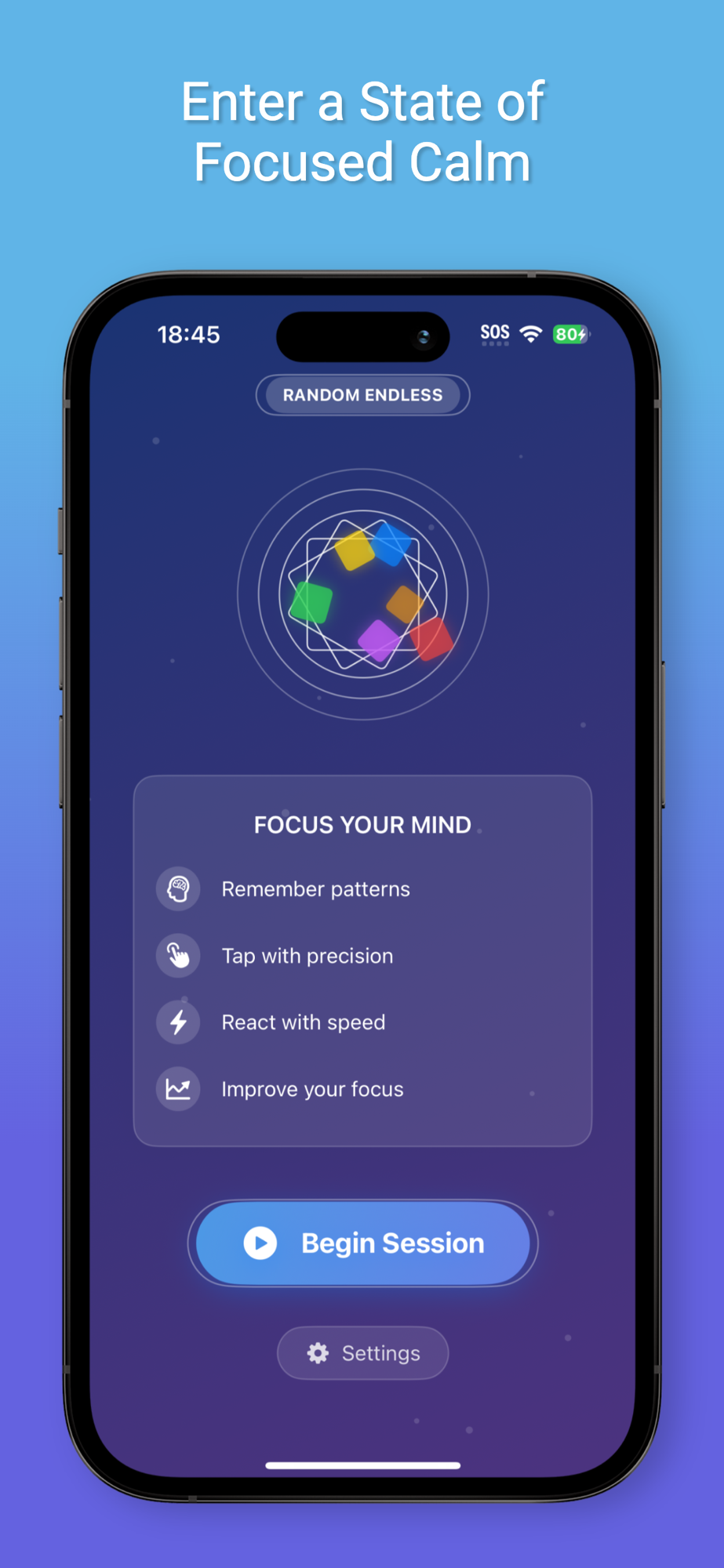 Clarity Tap combines the focus of meditation with the excitement of quick-reaction gameplay to create a unique brain training experience. Challenge your memory, improve your reaction time, and find your flow state through colorful sequence challenges.