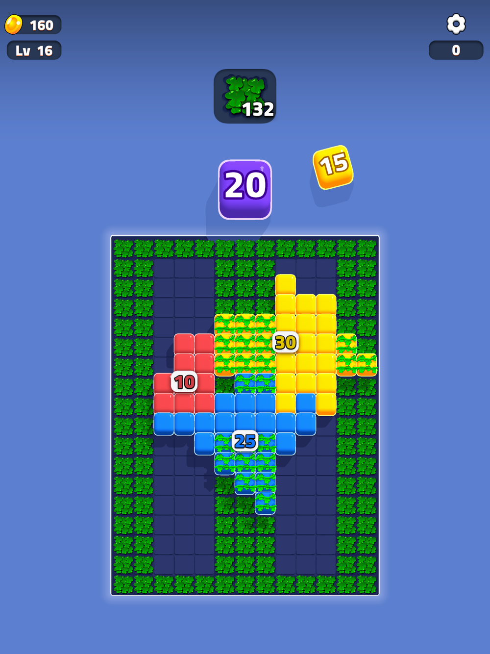 > Clear grass by popping blocks on top
