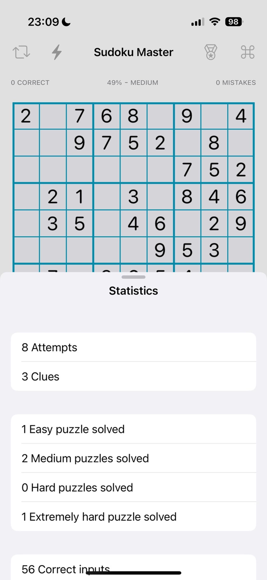 Sudoku Master isn’t just a game—it’s an exercise for your memory, focus, and problem-solving skills. Perfect for relaxation or brain training, Sudoku helps sharpen your logic and keep your mind active.