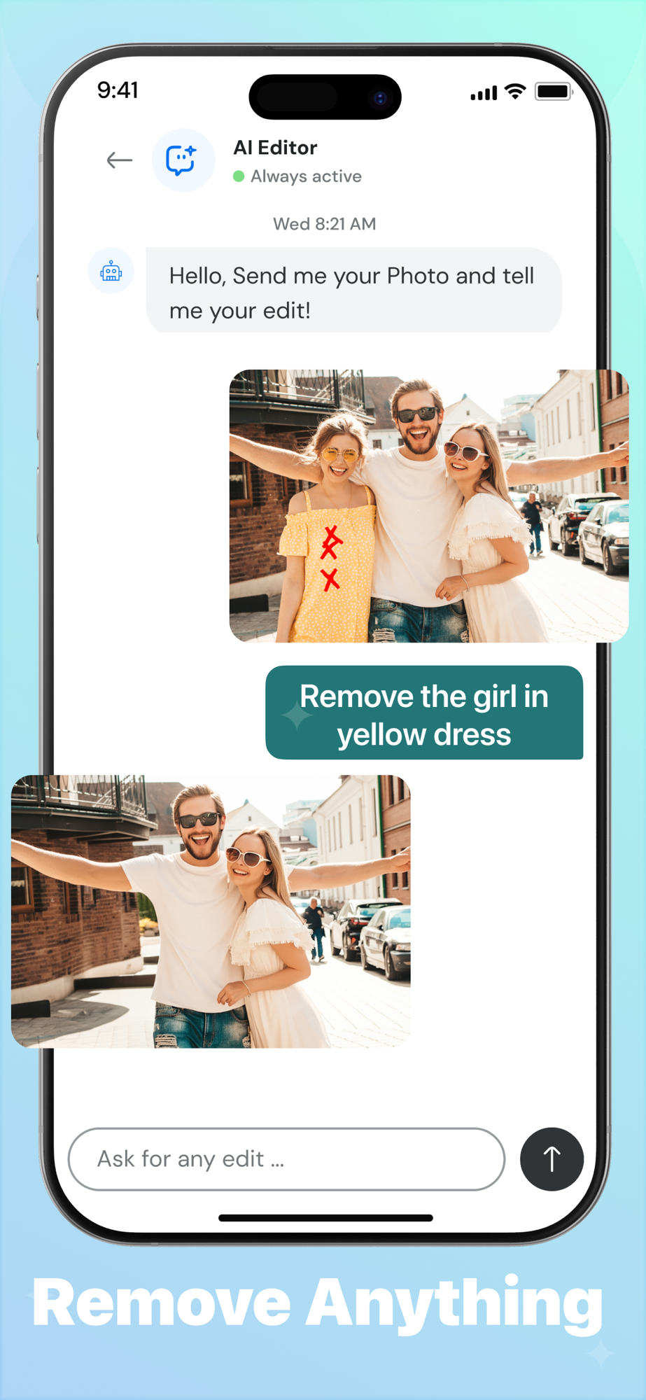 Ever wished you could just tell your photos what to do? Now you can! Our AI-powered photo editor lets you chat your way to flawless edits—no complicated tools, no frustrating manual work. Just type what you want, and AI will handle it. Change outfits? Done. Remove your ex from vacation photos? Consider it erased. Swap backgrounds? Easy. It’s like having a personal photo wizard in your pocket!
