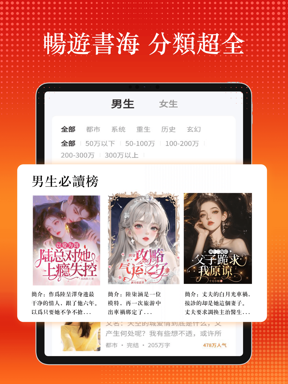 都市言情、玄幻修真、穿越宮鬥、影視原著……全網熱搜作品一網打盡;