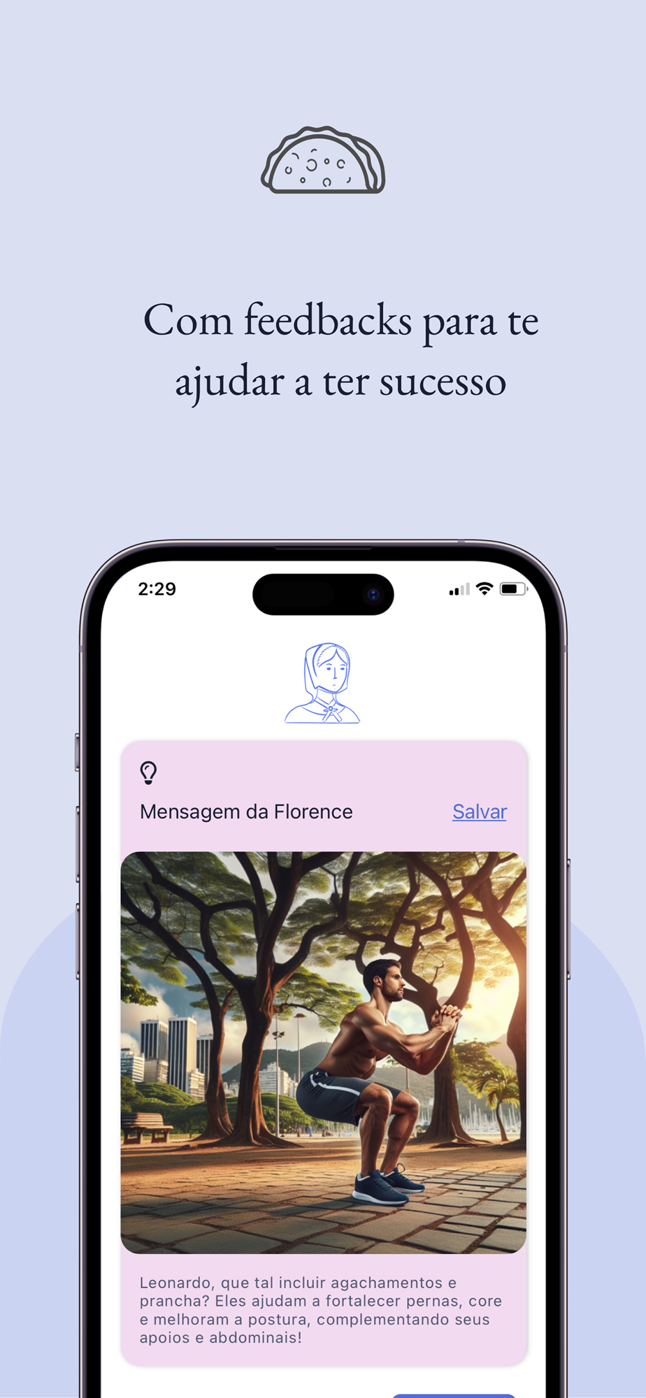 1) Você escolhe seus hábitos: Quem escolhe quais hábitos desenvolver é você, e a Florence te ajuda no caminho! Utilize nossas ferramentas para se exercitar e se alimentar melhor. Nosso papel é ajudar você a atingir seus objetivos.