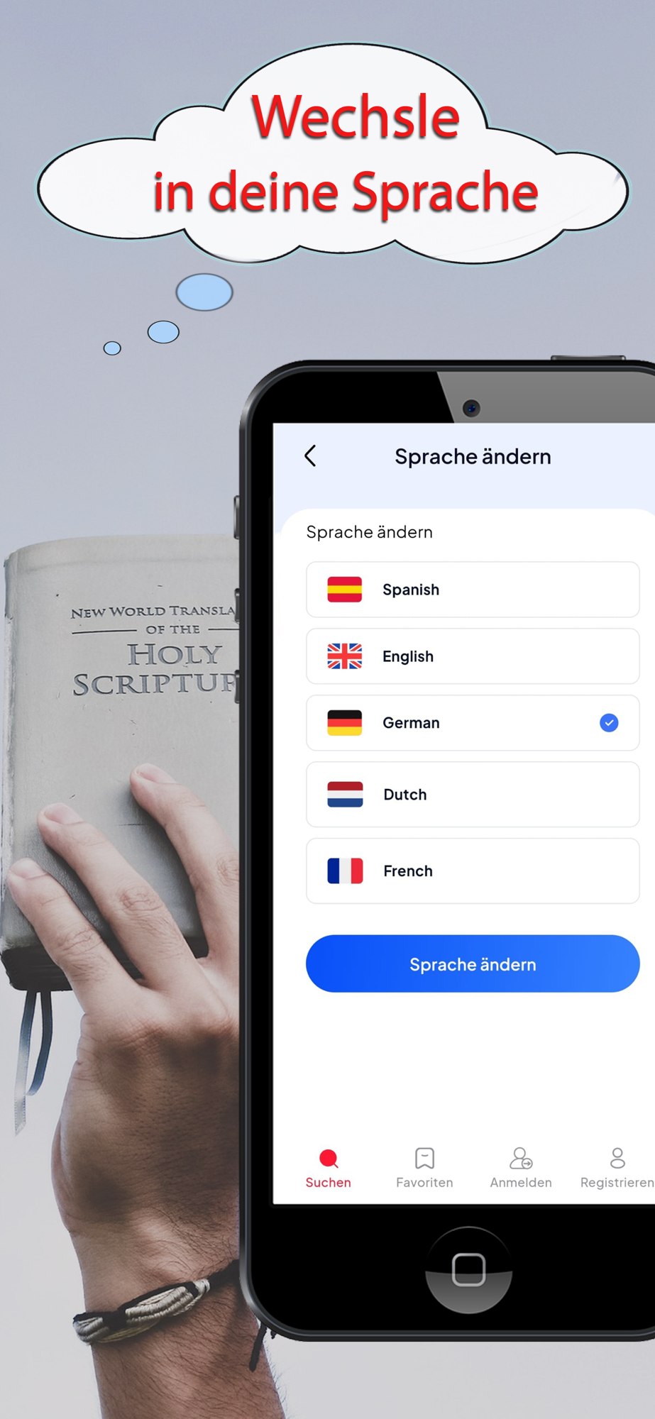 Die App Anudar ist verfügbar in den Sprachen: Deutsch, Spanisch, Englisch, Französisch und Niederländisch.