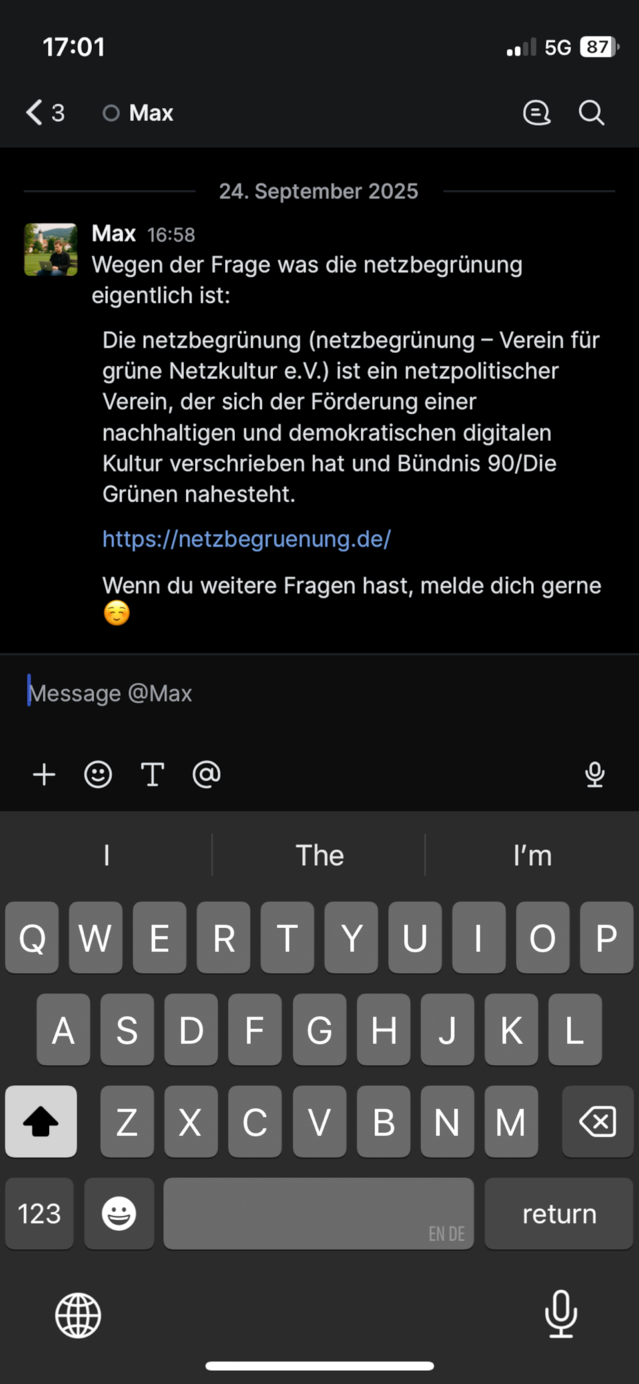 Dies ist die Chat-Plattform für alle Mitglieder von BÜNDNIS 90/DIE GRÜNEN.