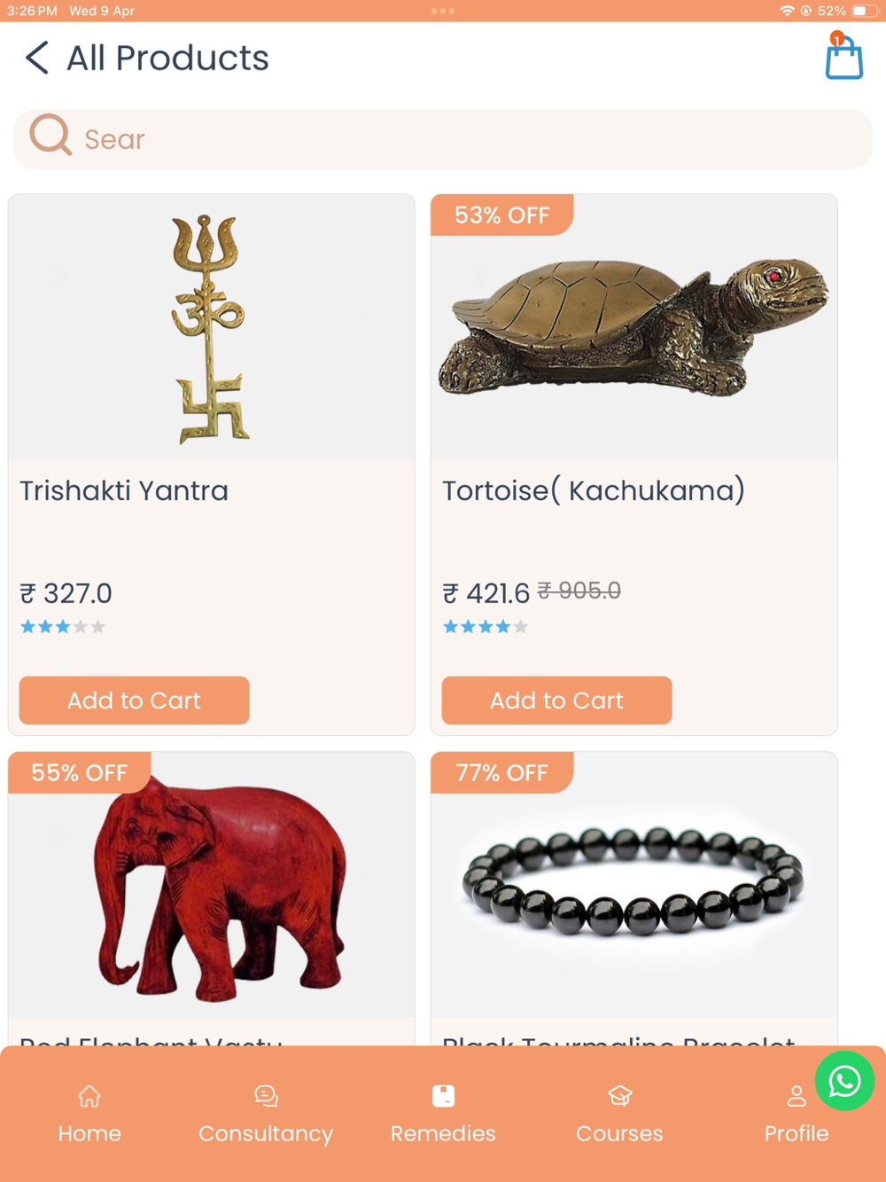 • Product Marketplace: Browse and purchase a wide range of spiritual products including vastu correction remedies, bracelets, gemstones, Rudraksha beads, and other items aimed at enhancing your well-being.