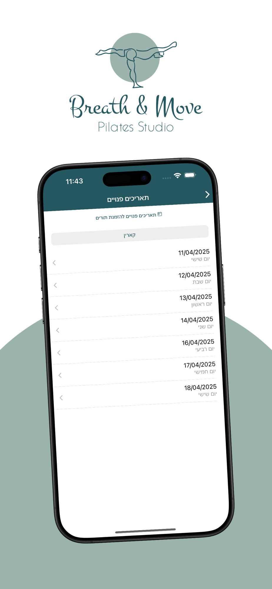 •להזמין מועדי אימוני פילאטיס באופן קל ומהיר.