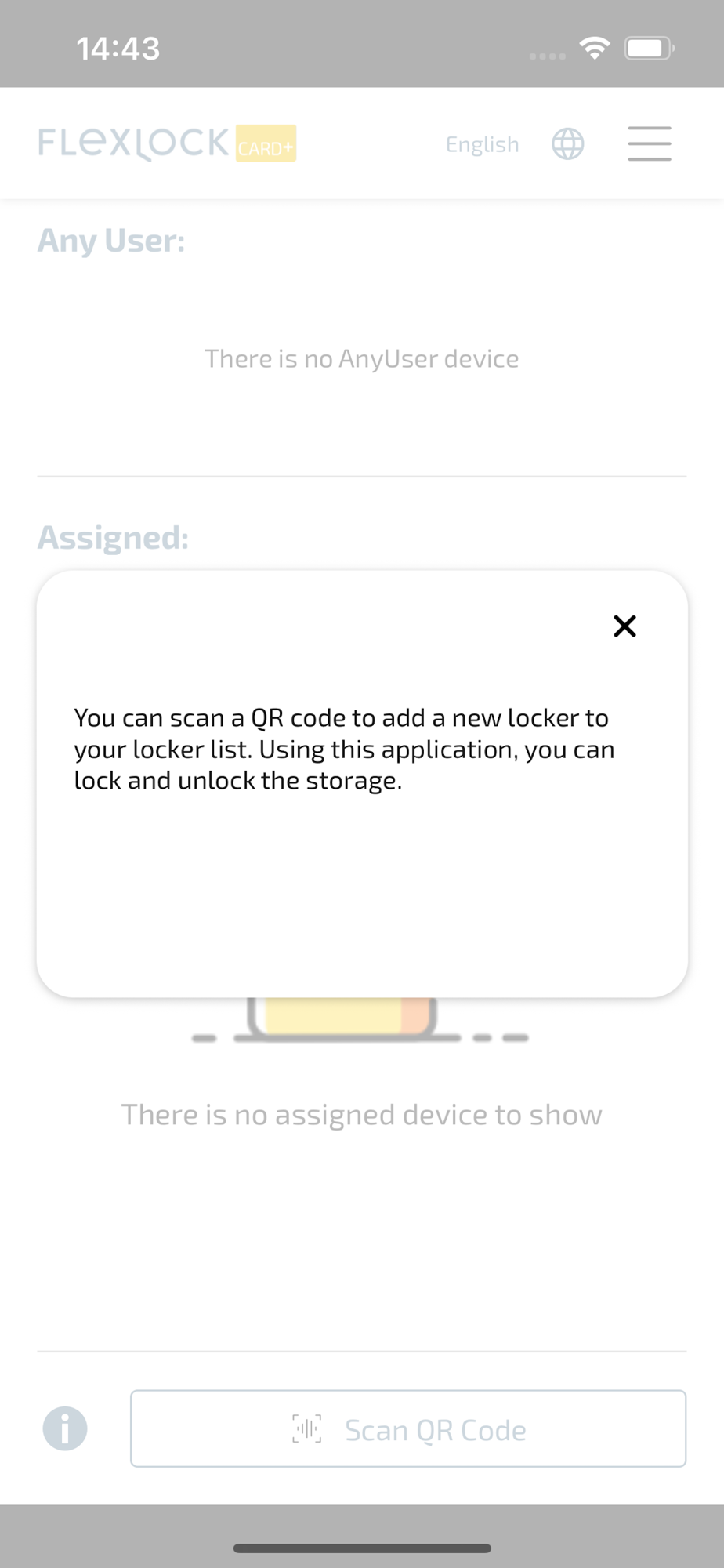 - Use the app to book a lock in any user mode by scanning a QR code located on the lockers, inside or outside, locks configured in in Any User mode.