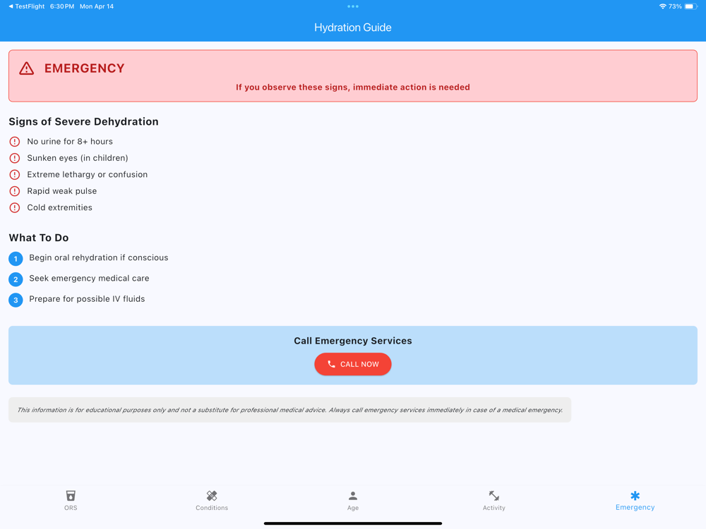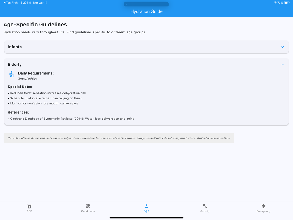 Hydration Guide is your all-in-one reference for safe and effective fluid replacement based on WHO, CDC, and AAP recommendations. Whether you're dealing with diarrhea, vomiting, excessive sweating, fever, or minor burns—this app helps you rehydrate correctly for your condition, age, and environment.