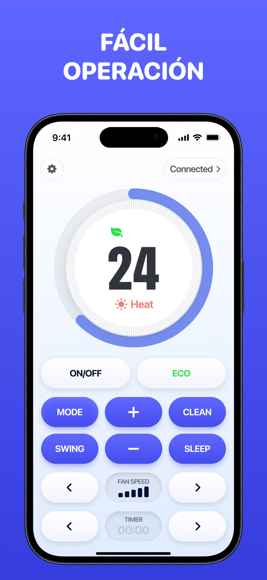 - Selecciona entre diferentes modos y niveles: refrigeración, calefacción, ventilación y más.