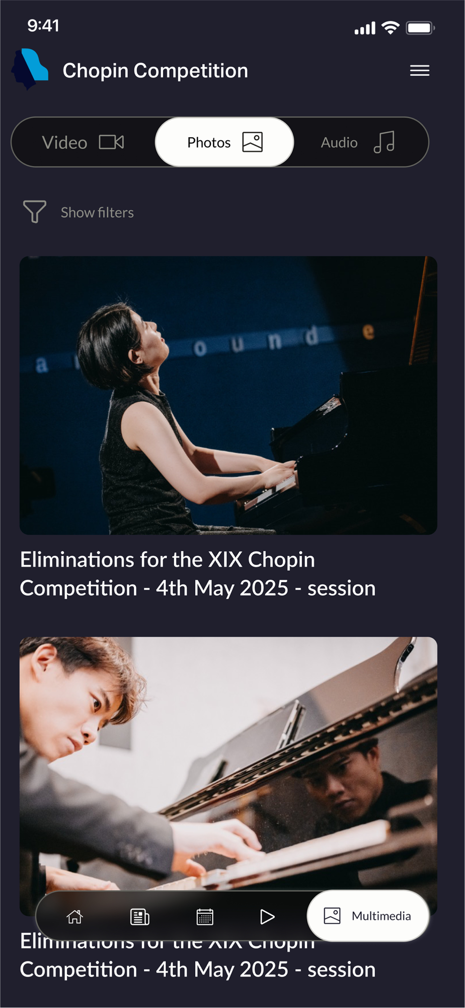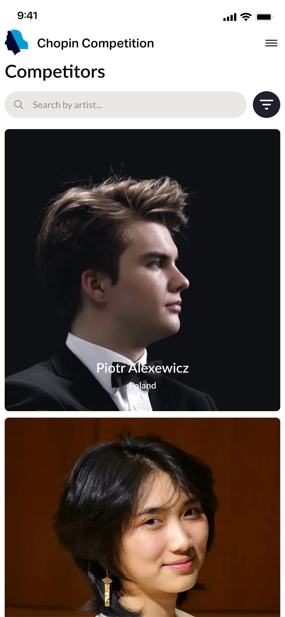 Śledź transmisje na żywo w jakości 4K ze wszystkich etapów konkursu, oglądaj multimedialne relacje z każdego dnia, otrzymuj powiadomienia o najważniejszych wydarzeniach, poznawaj sylwetki uczestników i odkrywaj bazę utworów, które zabrzmią podczas tego wyjątkowego święta muzyki