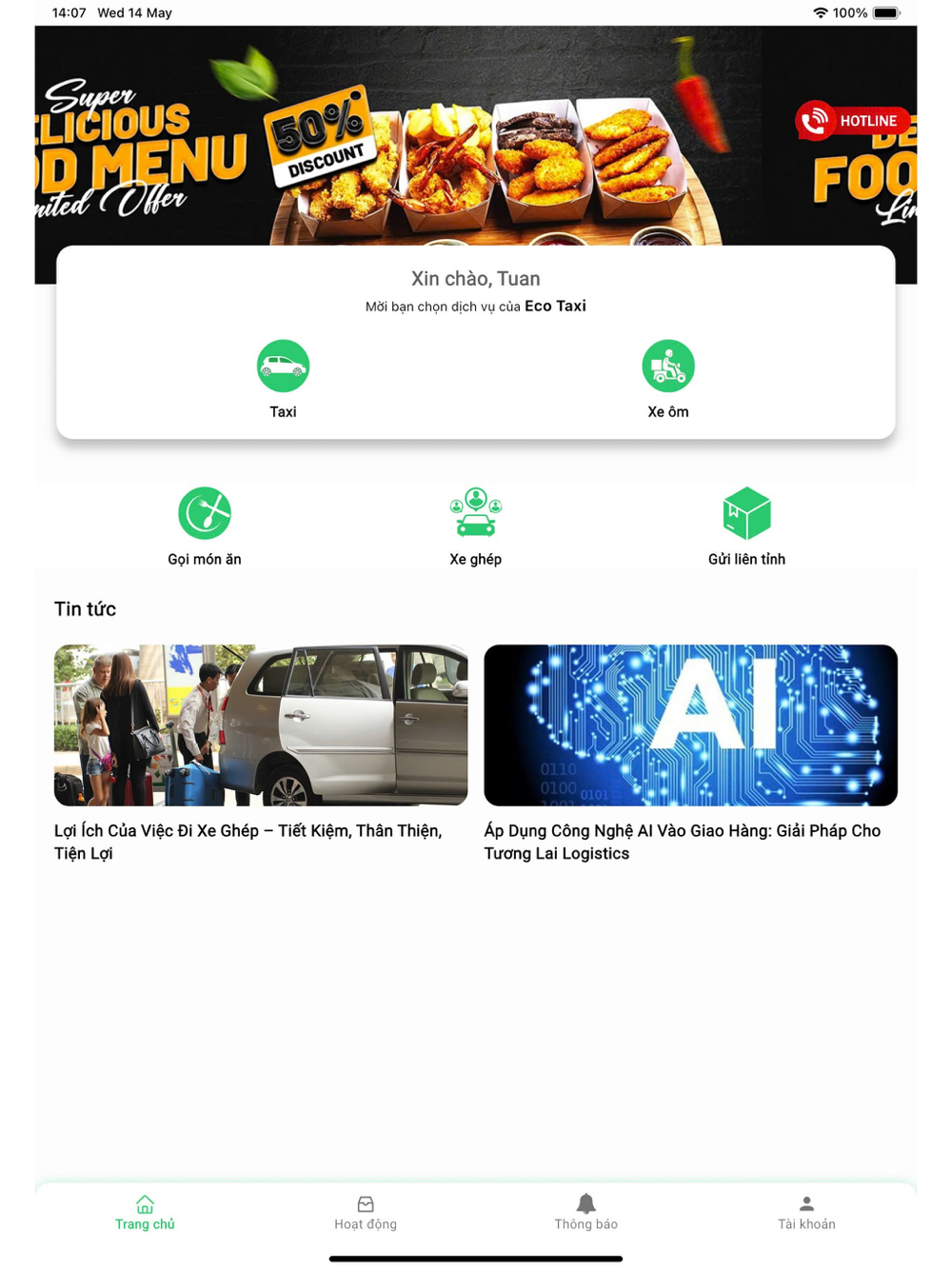 2. Gọi ô tô điện: Sử dụng xe điện hiện đại, thân thiện môi trường cho các 3. chuyến đi xa hoặc theo nhóm.