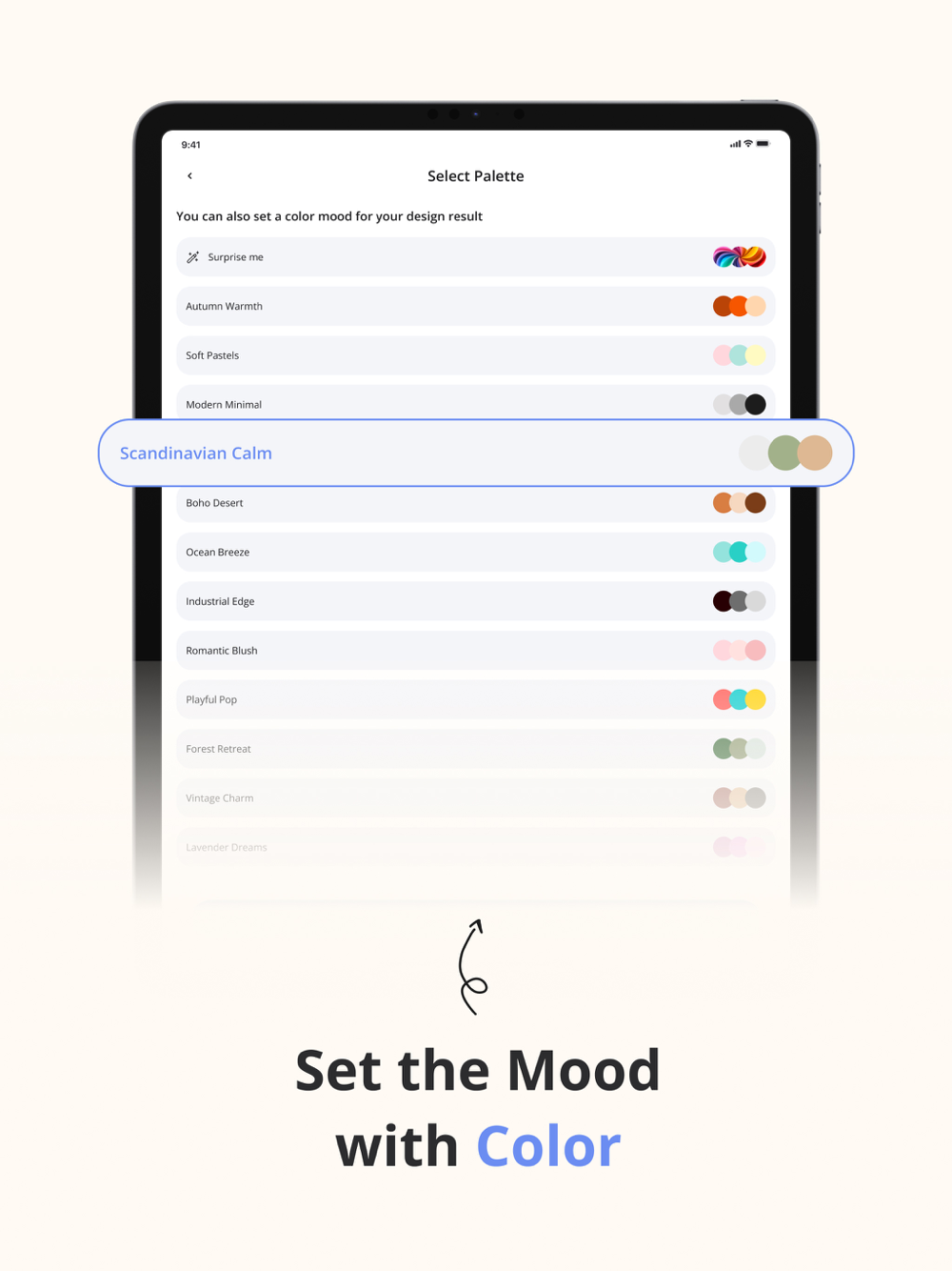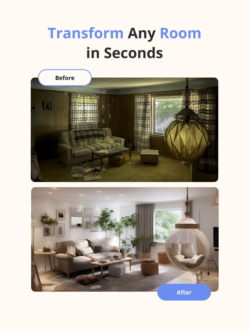 Choose from a variety of interior design styles. Customize your layout. Explore color palettes. Generate stunning new looks for your space in seconds. No design experience needed.