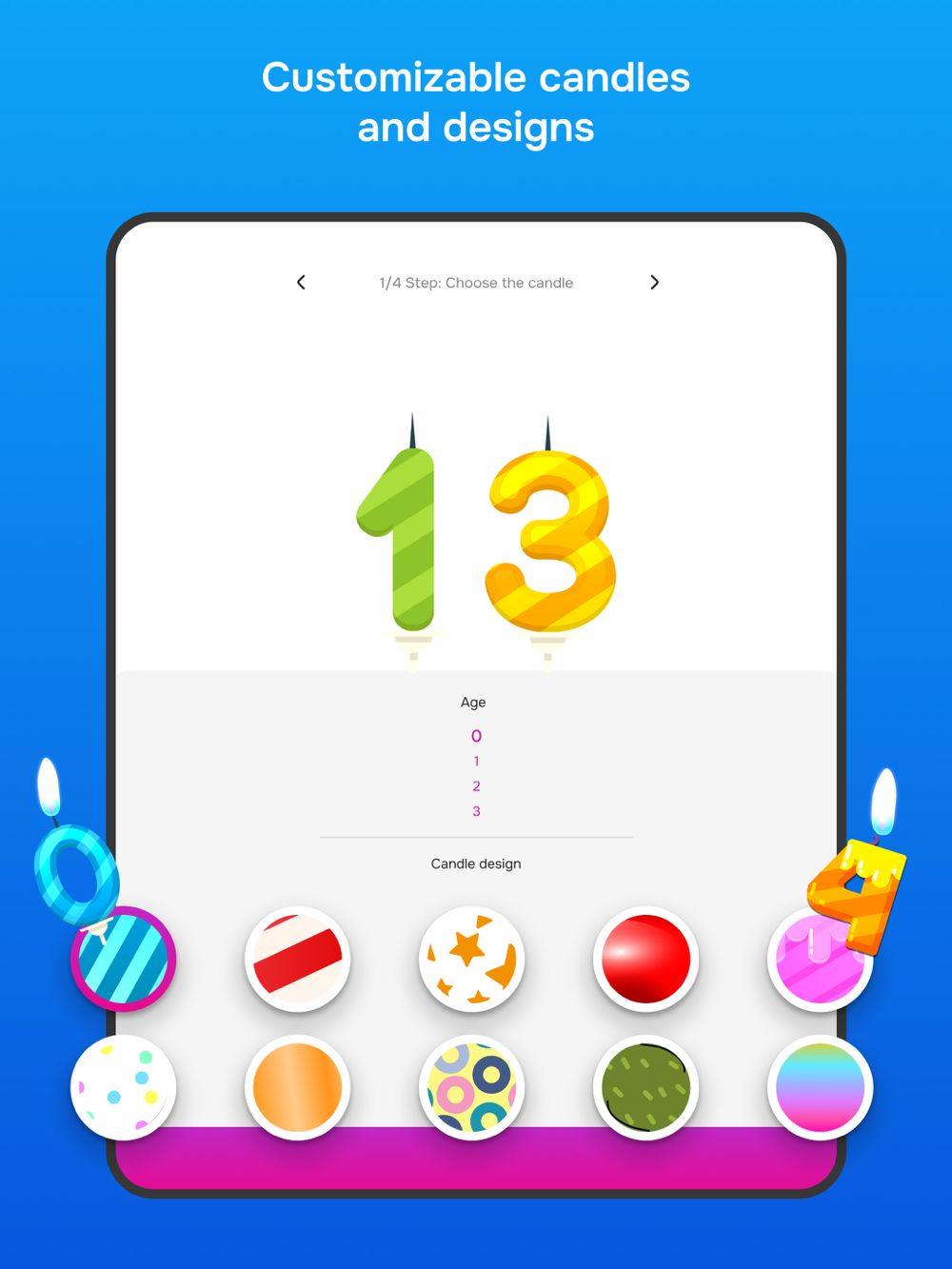 1. Pick the birthday age—anywhere from 0 to 99—with customizable number candles.