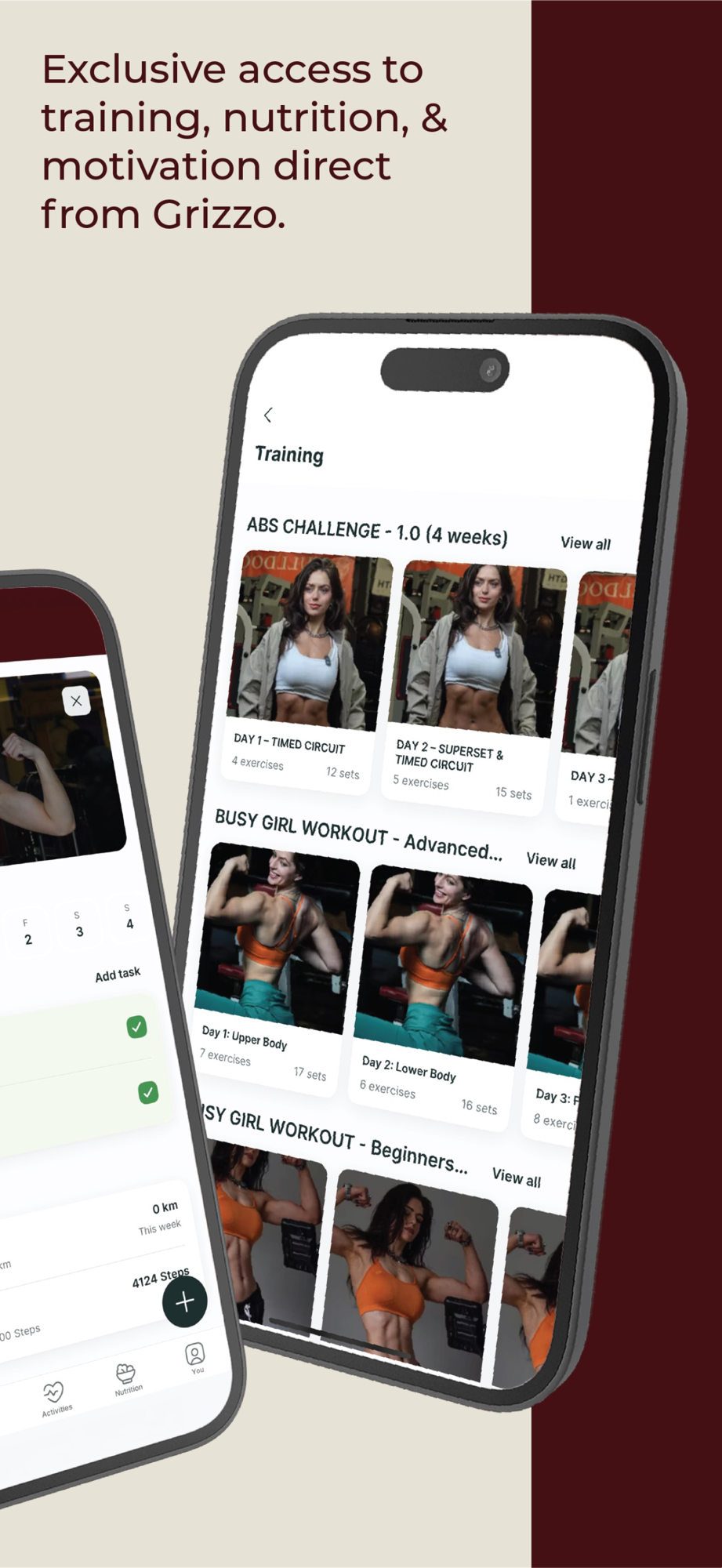 We are what we do on a daily basis. For good or bad, it is the small consistent choices we make repeatedly that shape our world. At Grizzoworld, we want to help guide some of those choices. Based on Grizzo’s real-time training and diet, Grizzoworld provides exclusive access to training and nutrition plans, along with tailored educational and motivational content that guides users on their self-improvement journey. The app includes: