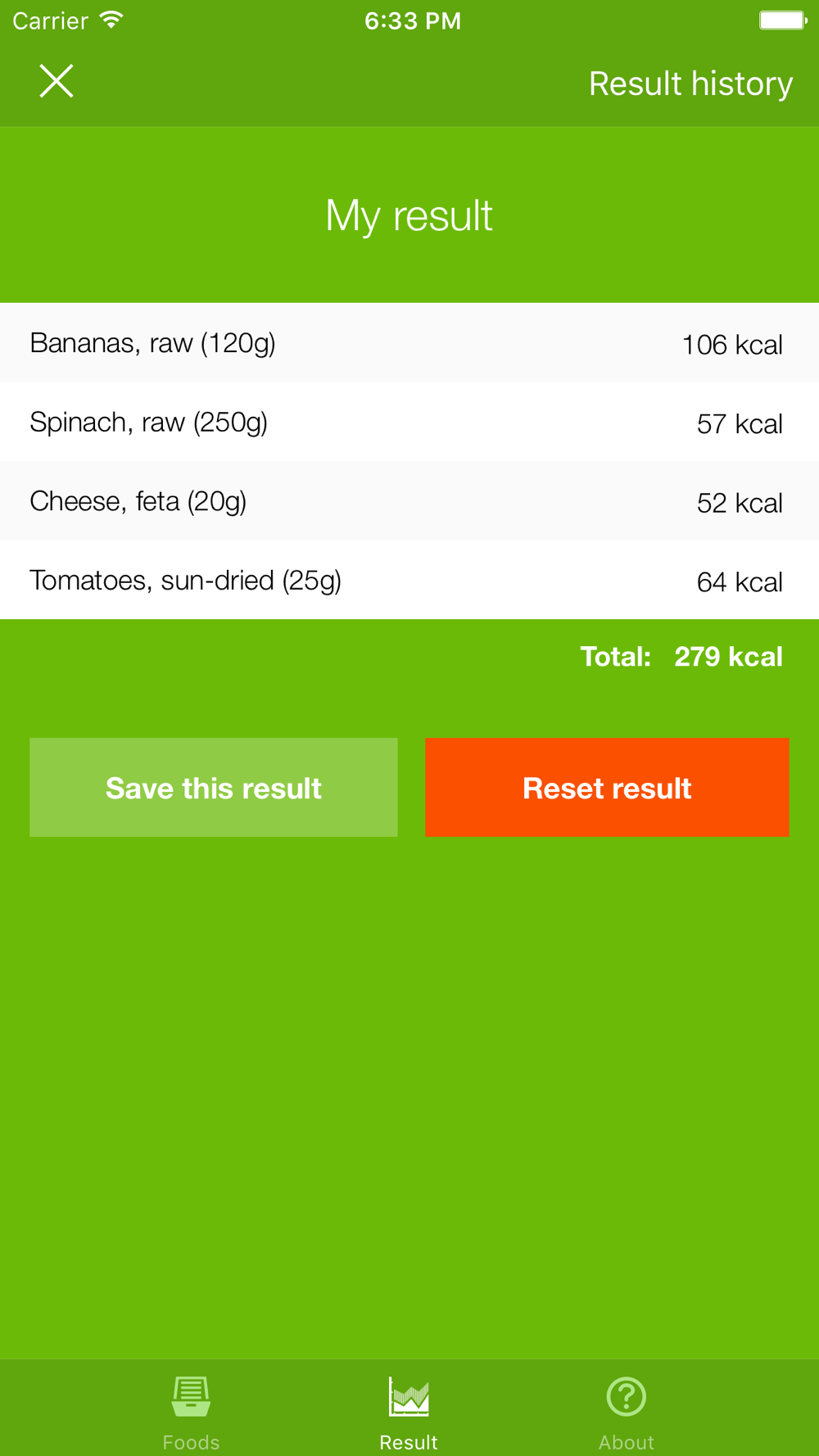 Calculate how many Calories your planned meal contains. Perfect for 5:2 fasting/diet.