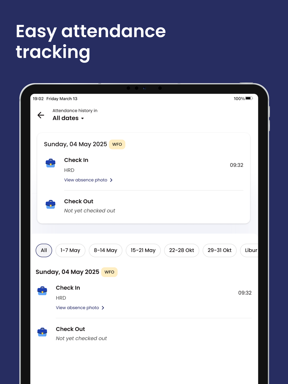 Fitur HRIS dirancang untuk memudahkan staf dalam menangani tugas-tugas terkait kepegawaian. Ini termasuk mencatat kehadiran, melihat data permohonan cuti, lembur, pinjaman, dan slip gaji, semuanya dalam satu platform.