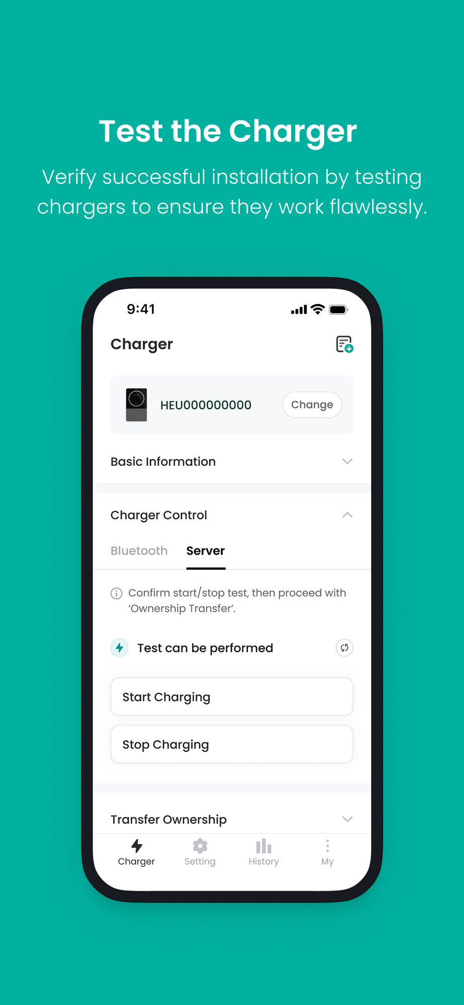 Real-Time Installation Monitoring: Check the charger’s connection status and firmware info during setup.