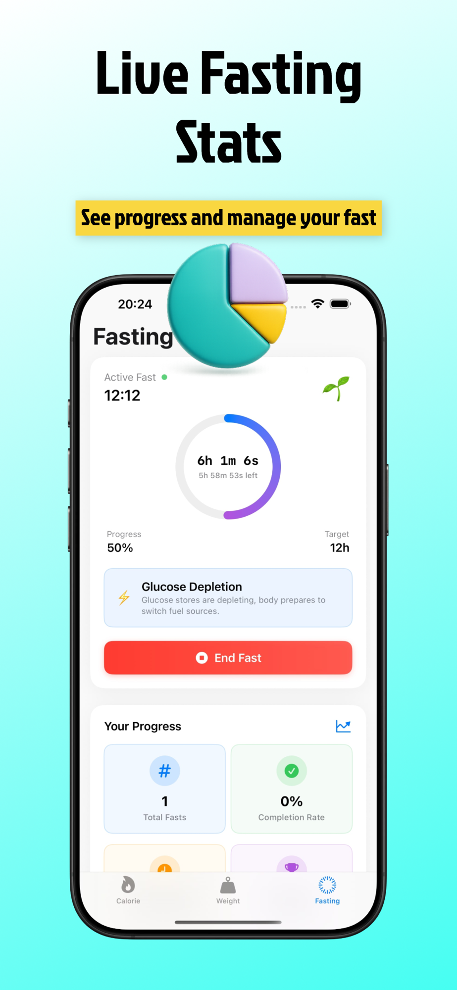• Track your fasting duration, streaks, and trends over time