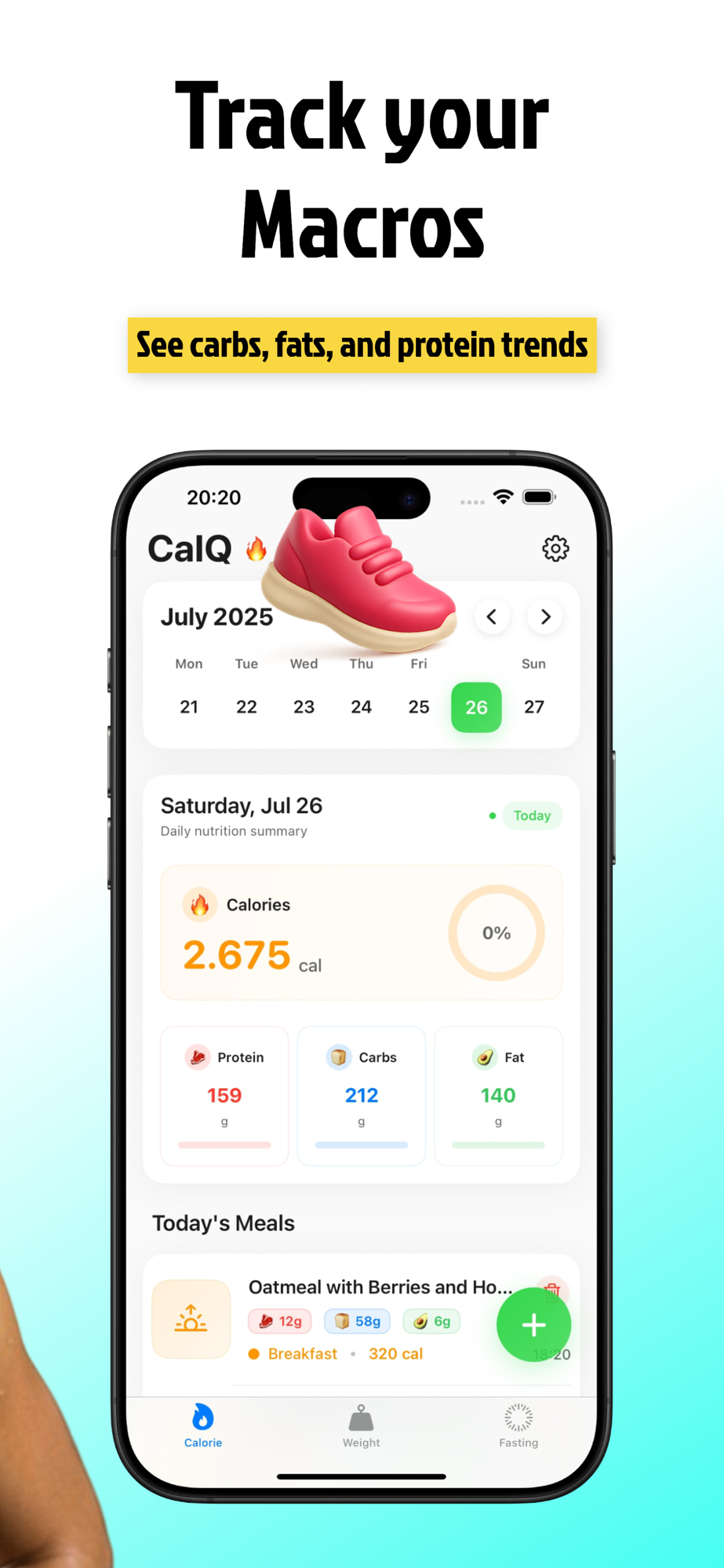 CalQ AI is your intelligent nutrition companion that makes macro, calorie, and fasting tracking effortless. Simply scan your meals, monitor your weight and fasting progress, and build healthy habits that last. Whether you're focused on weight loss, fitness, or general wellness, CalQ AI gives you the insights and tools to stay on track.