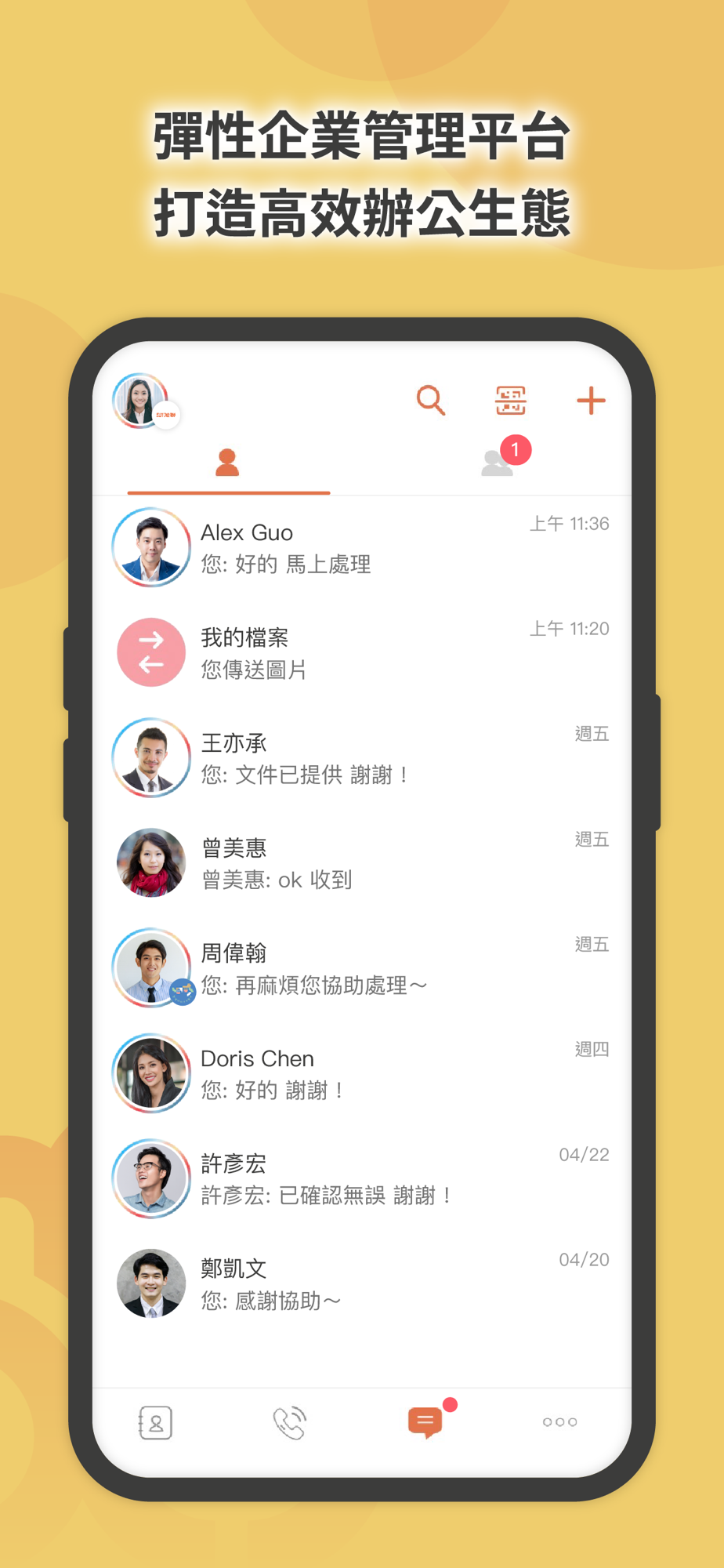 • 支援聯絡人查詢、專屬聊天室與公告管理。