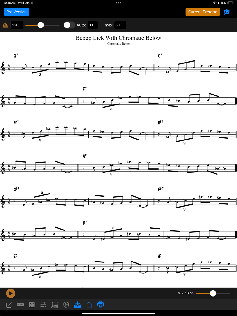 Run auto-generated exercises that move through all keys, helping you develop fluency and technique quickly.