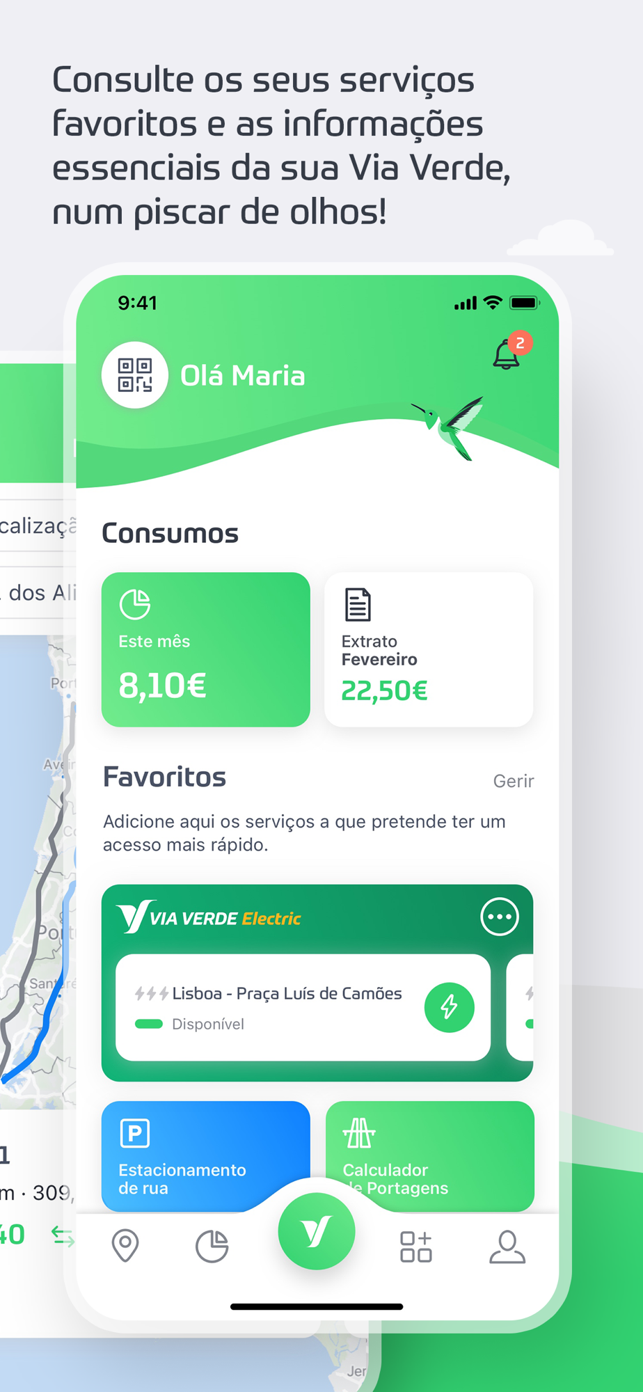 Sabia que, utilizando a app, pode pagar o seu estacionamento com a Via Verde? E calcular, previamente, as portagens dos seus percursos? Que pode carregar o seu veículo elétrico, ou até mesmo abastecer e pagar, sem ter de se deslocar ao balcão?