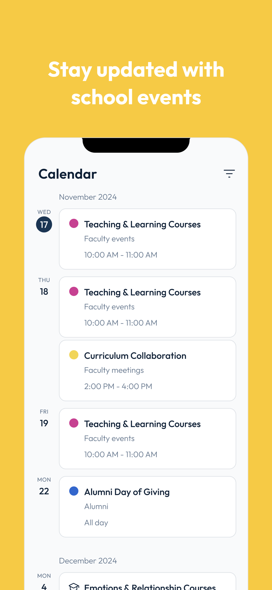 - Browse calendars for information about upcoming events. Filter calendars to see the events most relevant to their interests.