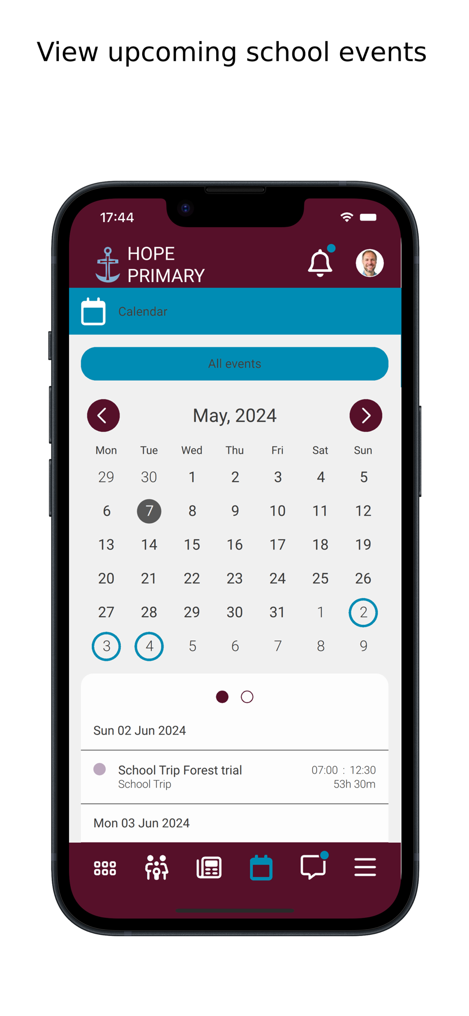 - View the school calendar and noticeboard, with information relevant to you and your child.